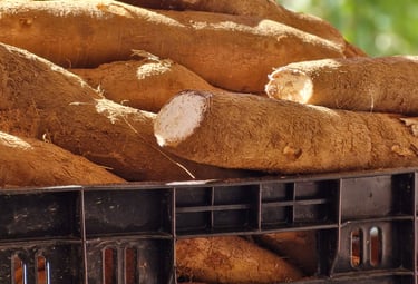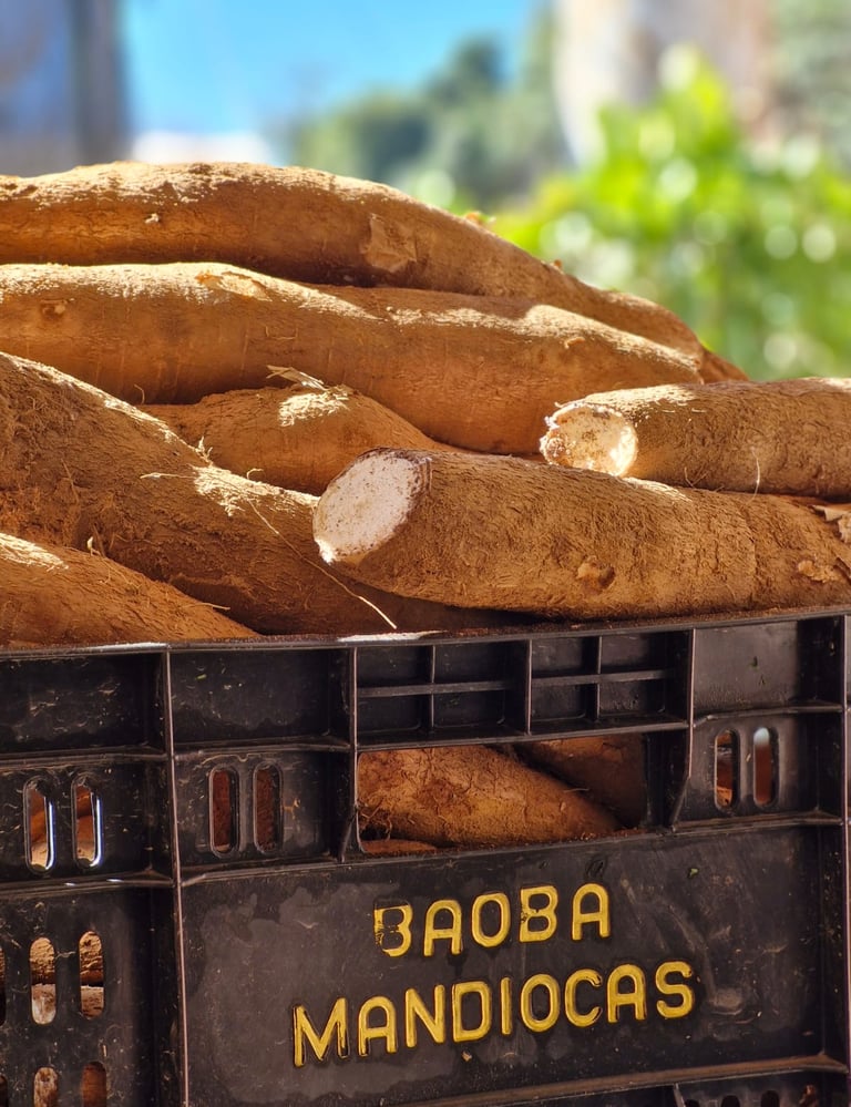 Mandioca in natura com casca, ideal para consumo em atacado.